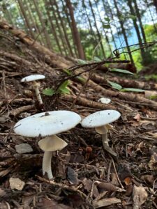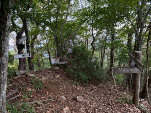 都民の森 (9時30分) 売店前からスタート。今日はいつになく涼しい。しばらく舗装路を登って行く。さいぐち峠着、ここからは ジグザグに折り返しながら登っていく左のブナの路へ進む。しばらく行くと、見晴らし小屋。小休止、小屋の温度計は17℃であった。ここから一旦少しくだってからしばらく最後の登りを頑張り、山頂に到着。曇りのせいか富士山を見ることはできなかった。少し肌寒位ぐらいなので昼食もそこそこに、11時35分下山にとりかかる。木段もあり、前方150メートル位の所を猿の群れが横切ったり、アップダウンを何度か乗り越え、槇寄山着。ベンチ、テーブルがあり、小休止。南面は木々がなく絶景。しばらく休んだあと直ぐに降り、西原峠を左におれ、仲の平バス停へと向かった。
