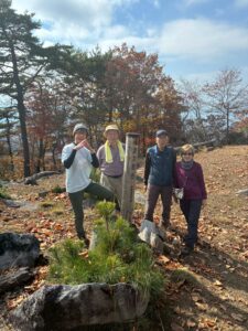 2日目はお初のルートで、登山道から林道への出入りがいくつか有り分かりにくい…踏み跡が落ち葉に隠され、その上時々消え去るピンクテープ…ちょこちょこと迷ったりしてしまいましたが、メンバーの皆さまのご協力も有り、スリルたっぷり楽しんで、何事も無く予定通り下山出来ました。最後大急ぎさせてしまいましたが、2日間ありがとうございました。若旦那にまた来春ねと約束して来ましたので、また企画いたしますのでどうぞご参加よろしくお願いします。