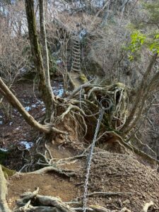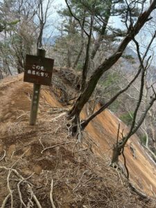 下調べの段階で、崩落箇所や痩せ尾根、鎖やハシゴ、木段や崩れそうな木橋などドキドキが満載のコースだとは思いましたが、想像を裏切らないスリルたっぷりの登山道でした。